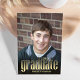 Dieses Design zeichnet sich durch eine graduelle Ankündigung, mit einem modernen minimalistischen, 2 Foto-Vorlage, perfekt für High School oder Uni, mit schwarz und gold, trendige Drehbuch, fett Schrift, und einfach, stilvoll, Abschluss