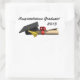 Dieses Bild ist von einer schwarzen Mütze mit einem goldenen Tassel und einem Diplom, das mit einem roten Band aufgerollt ist, das um sie herum gebunden ist. Ein großartiges Bild für den Absolventen. Dieses Design kann vollständig angepasst werden, indem die Hintergrundfarbe oder jeder Text geändert wird. Die Aufkleber sind in verschiedenen Formen und Größen erhältlich.