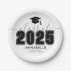 Klasse von 2025 Fett elegante Schwarz-Weiß-Abschluss-Papierplatte. Feiern Sie diesen Meilenstein mit einer stilvollen und personalisierten Papiertafel aus Abschluss, die sich perfekt zum Essen auf einer Abschlussfeier eignet. Mit "Class of" in weichem Grau und "2025" (oder einem beliebigen Jahr) in fett schwarz, zusammen mit einem schwarzen Graduierungskappensymbol. Ein schlichter schwarzer Rahmen grenzt an die Kanten für einen polierten Look. Am unteren Ende des Bildes ist ein individualisierbarer Platz für den Schulnamen des Absolventen vorhanden, was es zu einem einzigartigen und aussagekräftigen Party macht. Vollständig anpassbar, können Sie die Farben und den Text anpassen, um die Schulfarben oder den persönlichen Stil, sodass es eine perfekte Ergänzung zum Feiern!
