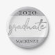 Stilvolle Graduierungsparty-Overlay-Vorlage mit Akzenten in elegantem Weiß und einer silbernen Imitat Metallic Chrompalette. Das Design zeichnet sich durch eine schicke silbergraue handgeschriebene Pinselschrift "graduate" Typografie auf weißem Hintergrund aus, zusammen mit dem Namen und Abschluss des Absolventen. Eine tolle Art, die Grundschule, die Oberschule oder den Uni-Abschluss zu ehren! #Classof2019 #bound