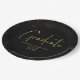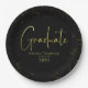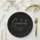 Dieses Design verfügt über ein modernes, einfaches Party, mit einem Abschluss schwarz und gold Konfetti, für Senioren der High School oder Uni, einer personalisierten Namensklasse Ihres Jahres, einem modischen Kalligraphie-Script-Schriftart, einem Party-Blatt Papier Tafelgeschirr, Party Abschluss grad, einem einfachen minimalistischen Goldkonfetti Party, einem vereinfachenden modernen Design, einem grad Abschluss Dessert Platte