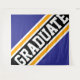 Dieses sportliche Design bietet athletischen GRADUATE Text in hervorgehobenen breiten diagonalen schwarzen, weißen und goldgelben Rennstreifen gegen marineblau Hintergrund. Die ersten und letzten Buchstaben des Wortes "Graduate" laufen von den Designkanten mit einem dynamischen Bannereffekt ab. Die Farben und Texte in diesem Design können personalisiert sein.