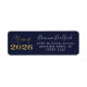Modern graduation navy blue and faux gold glitter return address labels for your high school or college graduate's invitations, announcements or thank you cards featuring elegant script typography CLASS OF 2026. ASSISTANCE: For design assistance or if you would like coordinating items, contact the designer BEFORE ORDERING via the Zazzle Chat MESSAGE tab or email makeitaboutyoustore@gmail.com.