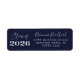 Modern graduation navy blue and faux silver glitter return address labels for your high school or college graduate's invitations, announcements or thank you cards featuring elegant script typography CLASS OF 2026. ASSISTANCE: For design assistance or if you would like coordinating items, contact the designer BEFORE ORDERING via the Zazzle Chat MESSAGE tab or email makeitaboutyoustore@gmail.com.