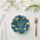 Blau und goldene Schulfarben, goldene Graduierungskappen, die sowohl ihm als auch ihr in die Luft geworfen werden. Schöne Graduierungsparty Papier Schüsseln und Teller für ein Party, für einen Absolvent einer High School, Uni oder Universität mit Schulfarben Blau und Gold. Personalisieren Sie mit dem Abschluss Jahr, und Name des Absolventen.