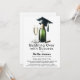 Celebrate graduation in style with this elegant champagne themed invitation featuring a bottle topped with a graduation cap. Perfect for a chic gathering or celebratory toast, this design sets the tone for an event filled with bubbles, laughter, and well deserved pride in the graduate’s success.