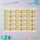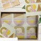 Retro-style graduation gift wrapping tissue paper that features the word "GRAD" designed with geometric shapes in various colors. Retro colors—yellow, pink, brown, and green—add to the retro style.