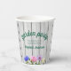 Garden party graduation with pink and white roses as well as blue and purple wildflowers.