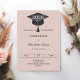A modern and stylish blush pink neutral invitation for a graduation party. Decorated with a black graduation cap. Personalize and add a name, and the details.