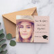On front: Add your own vertical size photo of the graduate. A trendy blush pink neutral background, black text. Templates for a name and date. The name and the text: Save the Date are written with a modern hand lettered style script. With a cap, tassel topper.