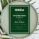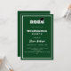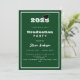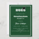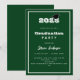 Eine moderne und stilvolle Einladung zu einer Abschlussfeier. Für ihn und sie. Grüner Hintergrund, weißer Text und Rahmen. Eine schwarze Graduierungskappe.