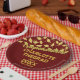 Maroon und goldene Schulfarben, goldene Graduierungskappen, die ihm und ihr in die Luft geworfen werden. Schöne Graduierungsparty personalisiert Servietten für ein Party für einen Absolventen von einer High School, Uni, oder Universität mit Schulfarben von Mond und Gold. Personalisieren Sie mit dem Jahr des Abschlusses, dem Namen des Absolventen und dem Namen der Schule.