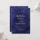 Eine glamouröse Einladungskarte für eine Graduiertenparty für ihn und sie. Ein marineblau mit goldenen Sternen dekorierter Hintergrund mit Imitaten. Die blaue Farbe ist ungleichmäßig. Personalisieren und fügen Sie einen Namen, ein Jahr und Party Details hinzu. Der Abschluss und der Name sind mit einem modernen, handgeschriebenen Stil geschrieben. Golden farbiger Text. Zurück: marineblau Hintergrund und goldene Sterne.