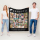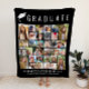Celebrate an unforgettable milestone with this personalized black graduation photo collage blanket, a meaningful keepsake that tells the graduate’s story from childhood to commencement day. Featuring a bold “Graduate” headline and a customizable grid of 30 favorite photos, this blanket transforms memories into a cozy, one-of-a-kind gift. Perfect for high school or college graduates, this blanket allows you to showcase cherished moments --family, friends, milestones, and everyday joys -- culminating in a proud graduation celebration. The graduate’s name, school, and class year are fully customizable, making it a heartfelt gift parents, grandparents, and graduates will treasure. This graduation blanket is ideal for dorm rooms, bedrooms, couches, or display during graduation parties. It’s both practical and sentimental—a keepsake they’ll reach for long after graduation day.