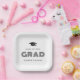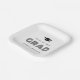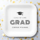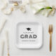 Abschluss-Papier-Teller mit einem Graduiertencap und den Namen und das Jahr über und unter dem Text "grad" in einem lustigen, modernen Schriftart. Schwarzer Text auf weißem oder benutzerdefiniertem Hintergrund.