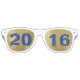 Die gerahmte Graduiertenbrille mit den gepunkteten Objektiven in einem goldenen Ton und dem großen blauen Abschluss Jahr, über beide Seiten. Ändern Sie das Jahr, um den Anzug Ihres Abschlusses zu erhalten.