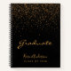 Für einen modernen und trendigen Abschluss. Ein schicker schwarzer Hintergrund mit goldenen Konfetti. Der Text: Graduate ist mit einem großen handgeschriebenen Stift geschrieben, goldenen Buchstaben. Vorlage für einen Namen und ein Jahr. Für die Planung Ihres Party, Notizen oder als Gästebuch.