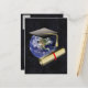 Graduiertenkap, Erde mit Diplom - Star Background Ankündigungspostkarte