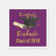Glückwunsch Graduieren Papierservietten auf einem hübschen lila Hintergrund mit einer Abbildung einer Graduationskappe und einer Diplomscrolle. Personalisieren Sie mit einem benutzerdefinierten Jahr - Klasse von 20xx.