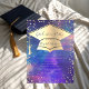Gold Graduierdeckel und Diamantrahmen auf einem farbenfrohen Splash Hintergrund.
