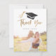 Personalisieren Sie diesen stilvollen und modernen Abschluss dank Ihrer Karte mit Ihrem Namen und Foto. Mit einem Gradationsdeckel mit Goldfäden und modernem Pinselskript, das in Gold "Danke" sagt. Die Rückseite weist das gleiche goldene Polka-Punkte-Muster auf.