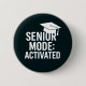 Ein Graduierungspapier und das Zitat: Senior Mode: aktiviert. Schwarzer Hintergrund, weißer Text. Sie können Ihre Schulfarbe im Designwerkzeug hinzufügen.