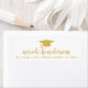 Moderne Abschluss-Rücksendeadressen-Aufkleber mit einem Gradcap und dem Namen des Absolventen in einem eleganten handschriftlichen Schriftart in einem goldenen Ton über einem weißen Hintergrund. Diese einfachen und hübschen Rücksendeadressen-Aufkleber sind perfekt für einen Absolventen.