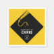 Creative Klasse von 25 Abschluss Servietten mit klassischem schwarzen Kappe und goldenen Tassel-Design auf gelbem Hintergrund. Bearbeiten Sie Text, um den Namen Ihres Lieblingsgrads und das Senior Class Jahr hinzuzufügen.