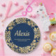 Elegante, Vintage Marineblau und Goldplatte mit vergoldetem Glitzer für die High School oder den Uni-Abschluss. Personalisieren Sie mit Ihrem Namen, Schule und Abschluss Jahr.