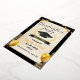 Das Design basiert auf soliden schwarzen Farben wie Gold oder Weiß mit hohen Temperaturen, mit grafischen Linien, einem Bild des Absolventen und redaktionellen Details.