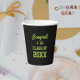 Mit diesen Papiertassen, die in den Schulfarben Schwarz und Kalkgrün gehalten sind, können Sie ein Party in der Oberschule oder im Uni-Abschluß mit Spaß verbinden. Drucken nur auf einer Seite des Bechers. Bearbeiten Sie das Klassenjahr mit Ihrem eigenen. Wählen Sie Ihren Papierbecherstil aus.