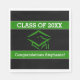 Einfach und doch atemberaubend in der Abschluss-Konstruktion ist eine grüne Mörtel-Graduierungskappe in der Mitte. Über und unter der Graduationskappe sind dicke grüne Linien mit weißem Schnitt. In der obersten Zeile ist anpassbarer Text, der Klasse von 20XX sagt, wo Sie das richtige Jahr für den Abschluss hinzufügen können. In der unteren Zeile ist anpassbarer Text in weißem Schriftart können Sie den Namen der Absolventen, etc. Auch passende Einladungen und Favoriten sind verfügbar!