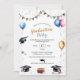 Feiern Sie den besonderen Absolventen im Stil! Wasserfarben-Objekte, die Abschluss symbolisieren, werden auf dieser lustigen Graduiertenparty-Einladung angezeigt. Ein goldenes und schwarzes Banner Zauber aus "Glückwunschs grad", aber man kann es ändern, zu was auch immer man will. Graduationskappen, Diplome und Ballons schmücken den Boden und die Seiten der Einladung mit einem subtilen konfetti Hintergrund, um die Feier zu ergänzen. Das Gegenteil ist ein Mörtel- und Konfetti-Muster, das dem entspricht. Verfügbar mit passenden Produkten.