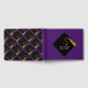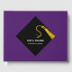Creative Abschluss Gästebuch mit Ratschlägen und viel Glück Wünschen mit schwarzen und goldenen Kappenmuster auf lila Hintergrund. So personalisieren Sie Text bearbeiten, um den Namen des Absolventen, Schule und Senior-Klasse Jahr.