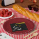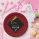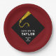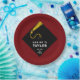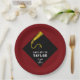 Creative Graduiertenparty Teller mit schwarzer Kappe und goldenem Tassel-Design auf maronischem Hintergrund. Bearbeiten Sie Text, um den Namen und das Jahr Ihres Lieblingsgrads hinzuzufügen.