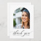 Mit diesem modernen Foto der Minimalistisch Graduation Party Dankeschön mit schlichter Eleganz. Dieses Design mit weißem Hintergrund und schwarzer Schriftzeichen kombiniert ein bogenförmiges Foto-Panel (in dem eine wertvolle Erinnerung dargestellt wird) mit anpassbaren Feldern für den Namen und das Datum. Das minimalistische Layout enthält einen herzlichen "Danke"-Header, der sicherstellt, dass Ihre Nachricht auf der Rückseite bleibt. Diese Karte ist perfekt für die Begrüßung nach Feiern geeignet und steht als gedruckter Sake zur Verfügung. Lach, aufrichtig und mühelos elegant!