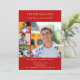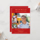 Erstellen Sie Ihre eigene, einzigartige Collage aus Foto. Verwenden Sie vier, vier Ihrer Lieblings-Fotos. Personalisieren und fügen Sie einen Namen und Party-Details hinzu. Rote Hintergrundfarbe