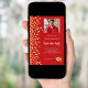 Eine moderne, elegante Graduation Party Einladung. Ein roter Hintergrund mit Imitaten goldenen Konfetti. Personalisieren und fügen Sie Foto, einen Namen und Party Details. Weißer Text.