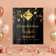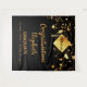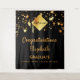 Ein schicker schwarzer Hintergrund. Dekoriert mit tropfenden goldenen Sternen und einem modernen, abstrakten Imitat Goldkappe, Hut, Tassel oben mit dem Jahr innen. Personalisieren und fügen Sie einen Namen, Schulname/Jahr hinzu. Der Text: Herzlichen Glückwunsch und der Name sind mit einem großen modernen handgeschriebenen Stil geschrieben. Für ihn und sie. Ein Banner , Party Dekoration, oder Foto Stand, Hintergrund, Jahr (jedes Jahr) Abschlussfeier.