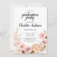 Graduation Party Klasse von 2022 Party Einladung mit einem üppig blütenrosa Blumenrand mit Palmetto-Blätter und einem modernen trendigen Schrifttyp.