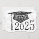 Blumendesigns auf Graduierdeckel, Hintergrund und Jahr. Schwarze Graduierungskappe auf weißem Hintergrund. Die Rückseite hat einen schwarzen Hintergrund mit weißen Buchstaben für die Abschlussfeier Einladungen.