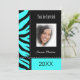 Chic aqua Zebra Hintergrund. Fügen Sie ein Foto Ihres Absolventen zu dieser klassischen Abschlussfeier Einladung. Farben, Text und Foto sind KUNDENBAR.