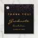 Für einen modernen und trendigen Abschluss. Ein schicker schwarzer Hintergrund mit rosa und lila Konfetti. Text: Danke! Der Text: Graduate ist mit einem großen handgeschriebenen Stift geschrieben, goldenen Buchstaben. Vorlage für einen Namen und ein Jahr.