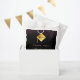 Für einen modernen und trendigen Abschluss. Ein schicker schwarzer Hintergrund mit rosa und lila Konfetti. Text: Danke! Der Text: Graduate ist mit einem großen handgeschriebenen Stift geschrieben, goldenen Buchstaben. Vorlage für einen Namen und ein Jahr. Mit einem modernen, abstrakten Mütze, Hut, Tassel in den Imitaten goldgelb mit dem Jahr innen dekoriert.
