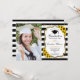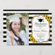 Einladung zur Graduation Party mit Ihrem Foto. Enthält schwarz-weiße Streifen, Skript-Schriftart, Sonnenblumen, Tassel und Konfetti. Rustikales Design mit Imitaten Glitzer Gold. Ideal für eine elegante Feier.