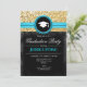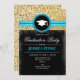 Abschluss Einladung - Gold Schwarz Türkis. Elegantes Design in Imitaten Glitzer Gold und Schwarz mit einem Hauch von türkisfarbenem Aqua Blau. Ideal für eine weibliche Abschlussfeier.