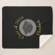 Eine personalisierte Sherpa-Decke, die mit einer schwarzen Graduationskappe versehen ist und von einem halbtransparenten weißen Kreis umgeben ist. Klasse von 20xx geschrieben oben. Modern und stilvoll.