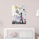 Dieses skurrile Graffiti-Kunstwerk zeigt ein Kind, das auf einer Leiter stehend ist, indem es ein Netz benutzt, um goldene Sterne am Himmel zu fangen, umgeben von blauen und rosafarbenen Flecken. Der Kontrast zwischen der schwarzen Silhouette und den lebhaften, spielerischen Farben schafft ein Gefühl der Hoffnung und des Staunens und macht eine mutige Aussage über Träume, Ambitionen und das grenzenlose Potenzial der Vorstellungskraft. Ideal für diejenigen, die urbane Straßenkunst mit einer kraftvollen Botschaft der Hoffnung und der Möglichkeit schätzen, fügt dieses Stück jedem Raum eine Touch der Magie hinzu.