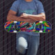 Dieses Skateboarddesign besticht durch ein graffiti-inspiriertes Auge, das aus abstrakter Zerstörungskunst hervorgeht. Vor allem ist es cool und bekommt einen Fahrer. Erwachsene, Jugendliche, Kinder.
