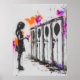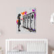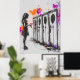 Dieses ausdrucksstarke Graffiti-Kunstwerk zeigt ein junges Mädchen, das vor einer Reihe von Spindern stehend ist und ein leuchtend rosa Herz trägt. Lila und orangefarbene Malereien verstärken die emotionale Wirkung des Stückes und symbolisieren die Themen Liebe, Verlust und persönliche Ausdrucksfähigkeit innerhalb institutioneller Grenzen. Dieses Stück ist perfekt für diejenigen, die eine kühne, urbane Straßenkunst mit einer tiefer emotionalen Botschaft schätzen, und bringt lebendige Farben und einen zum Nachdenken anregenden Kommentar in jeden Raum.